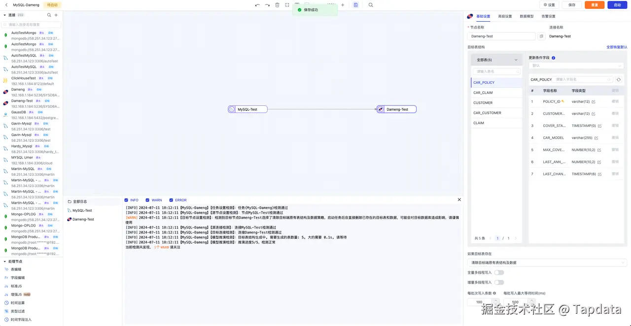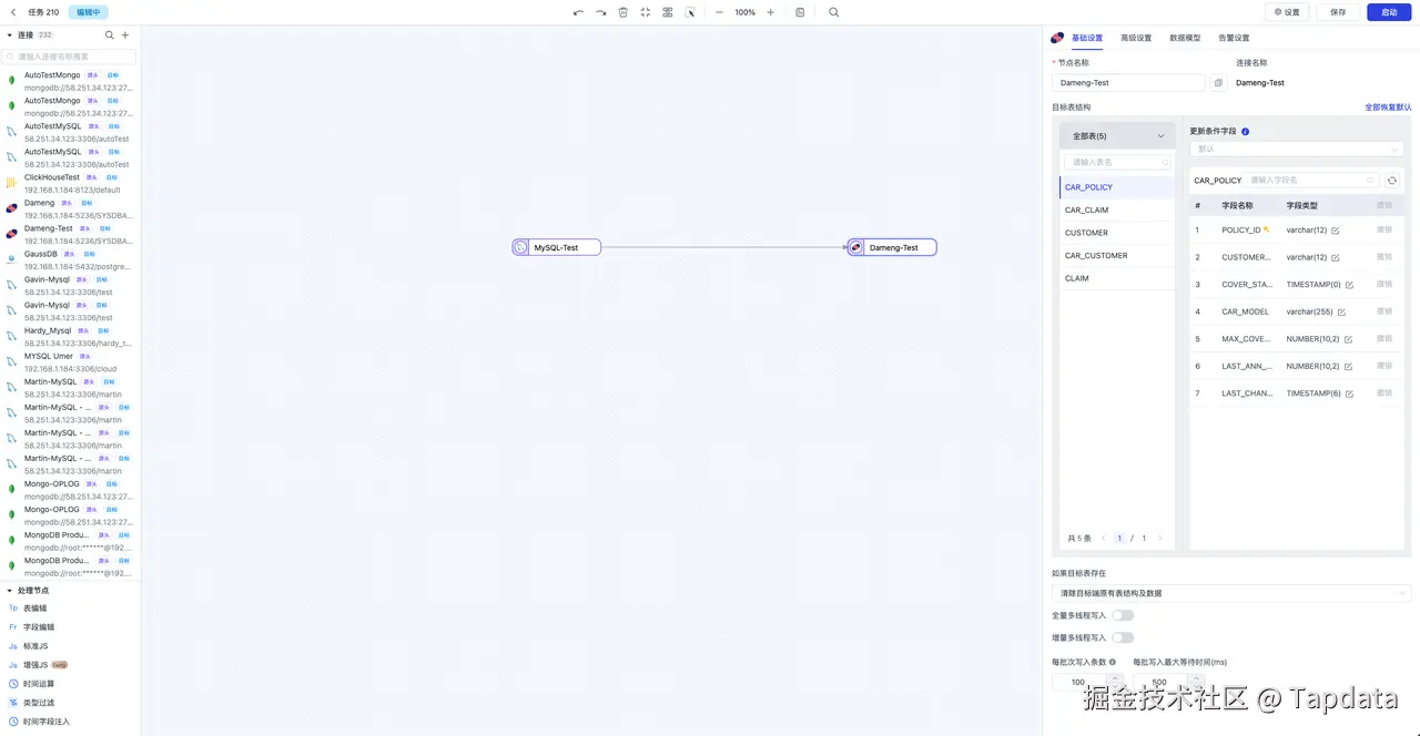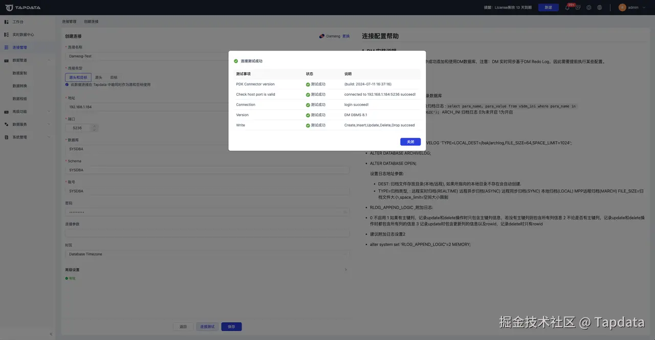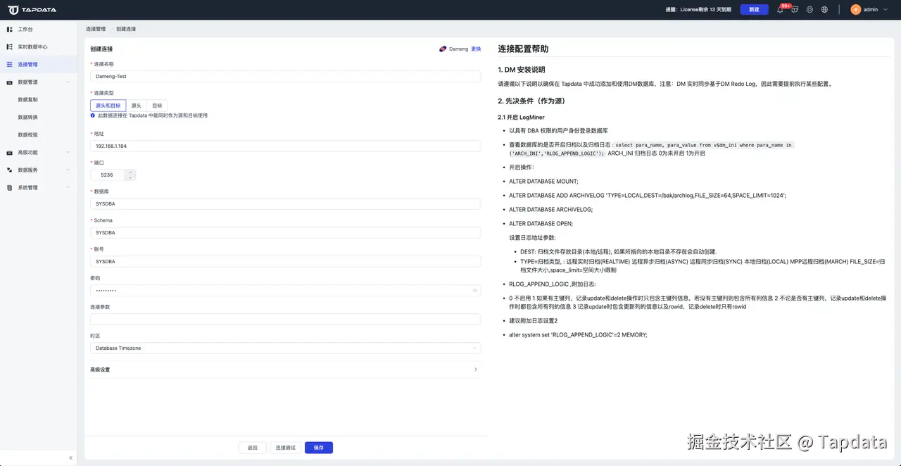 更多详情,参见《TapData 帮助文档-连接数据源-自建数据库 Dameng》:docs.tapdata.net/prerequisit…