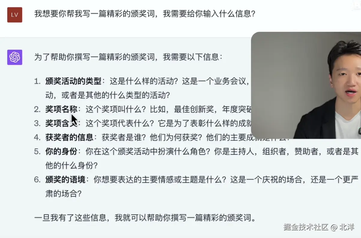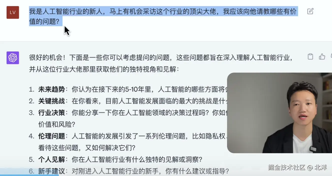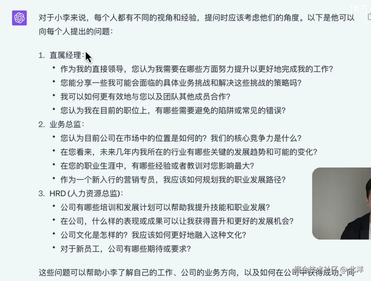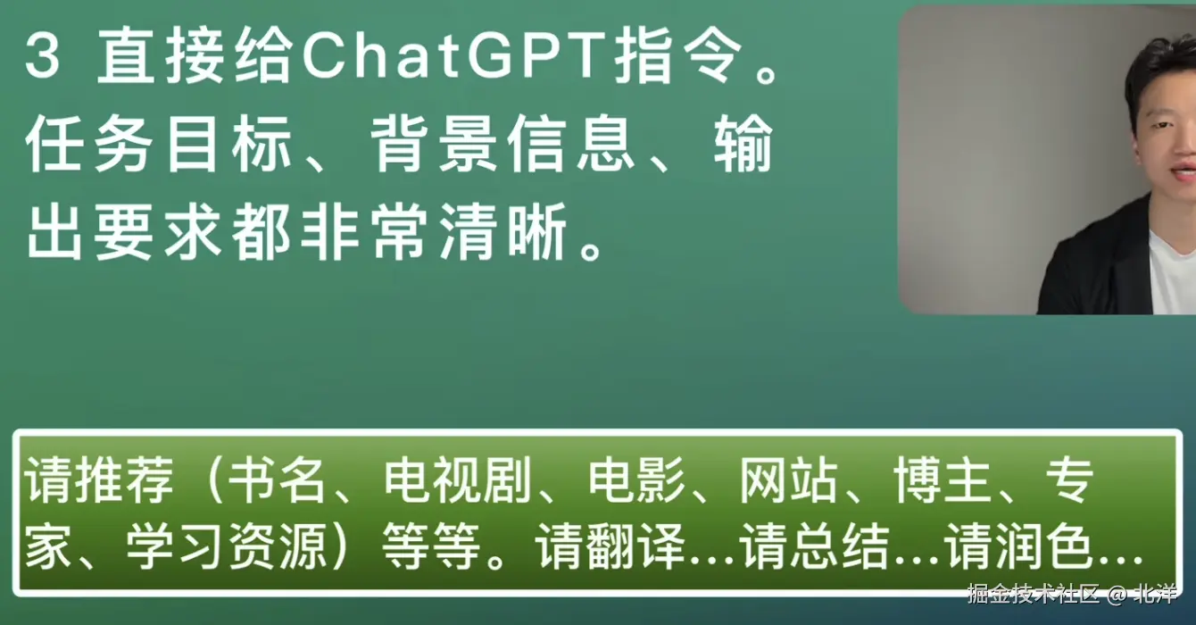 - 知道 怎样提问,比如对 提问的背景信息,任务目标,输出要求都很清晰,那么可以直接提问GPT