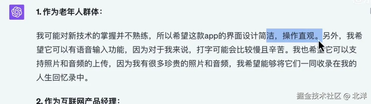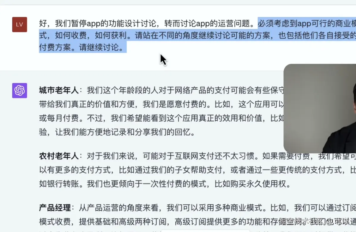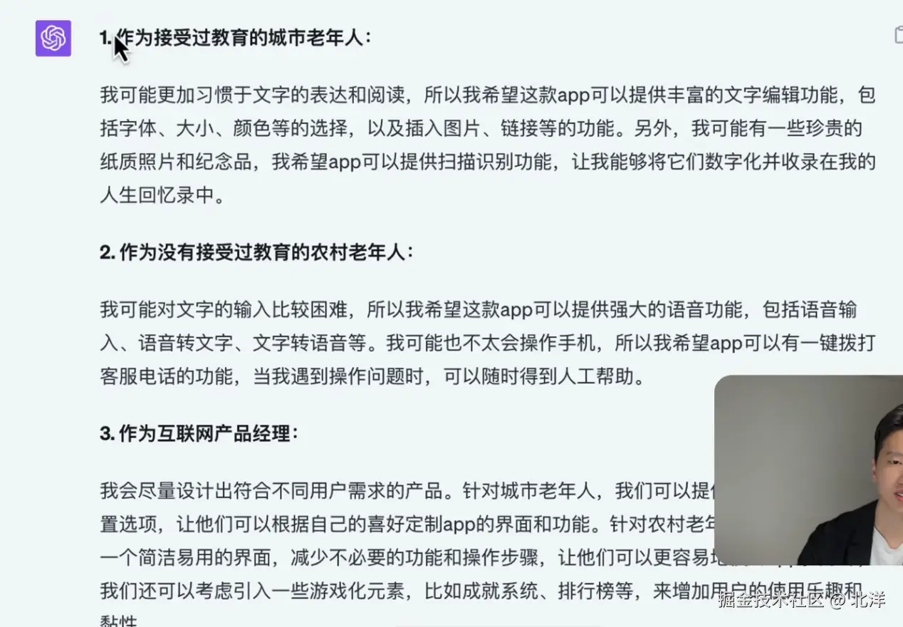 高质量有效讨论可能需要花费大量的时间成本,但是通过GPT对某类人的语料进行扩展和组织后 只花了半小时对这款app进行需求评审