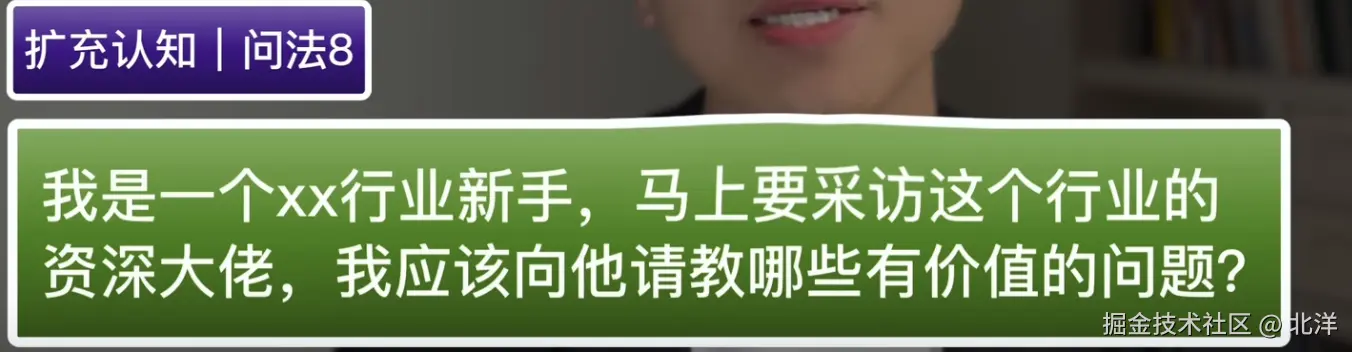 - 跨界学习也是检验认知 :我是一个xxx行业的新手,我马上要采访这个行业的自身大佬,我应该向他请教哪些有价值的问题