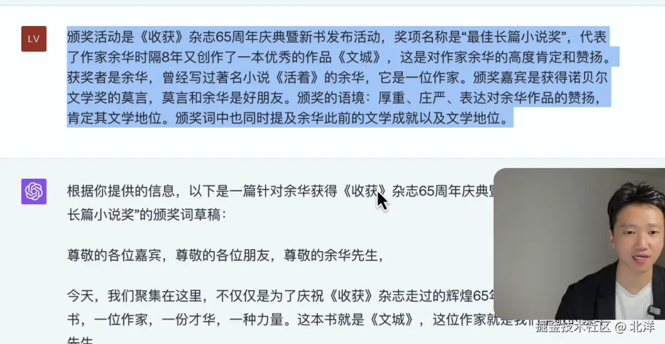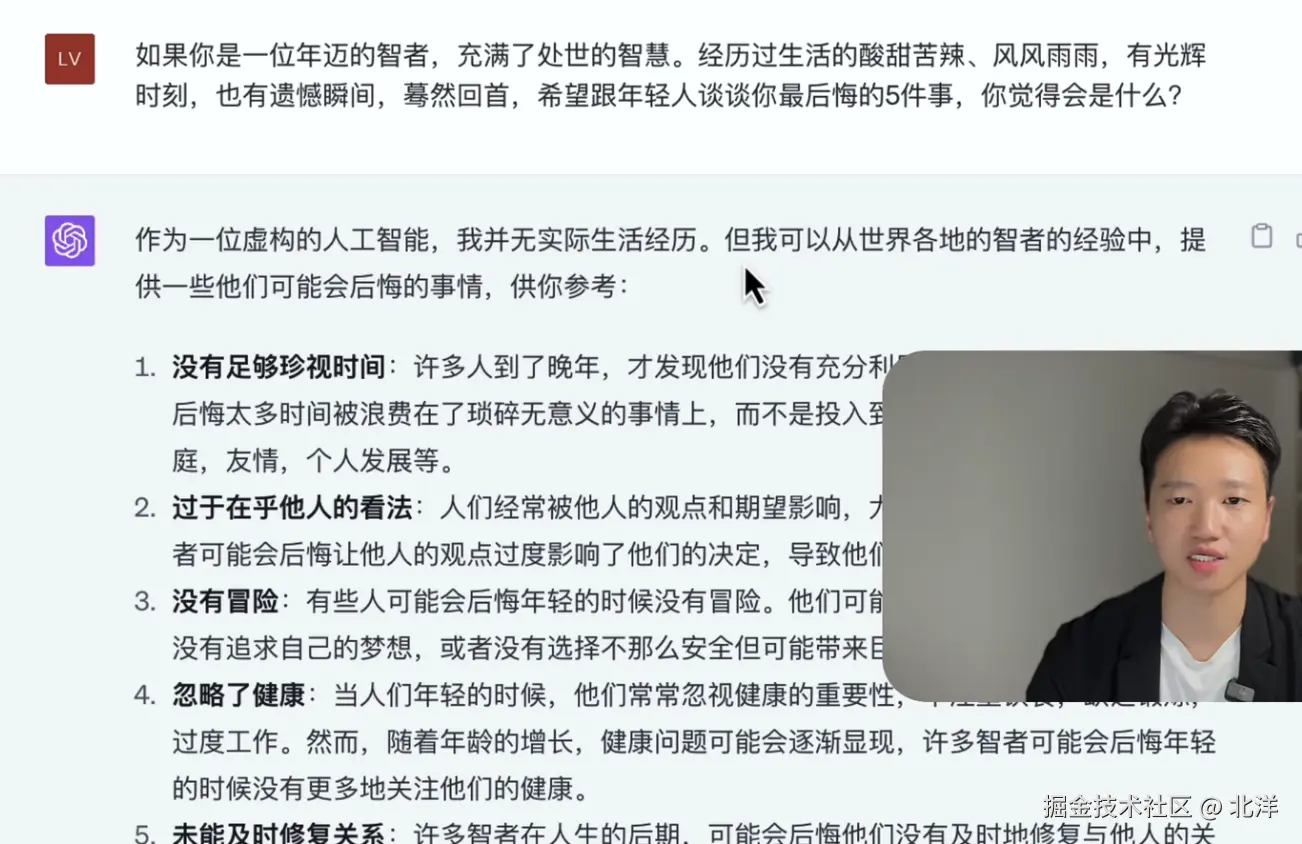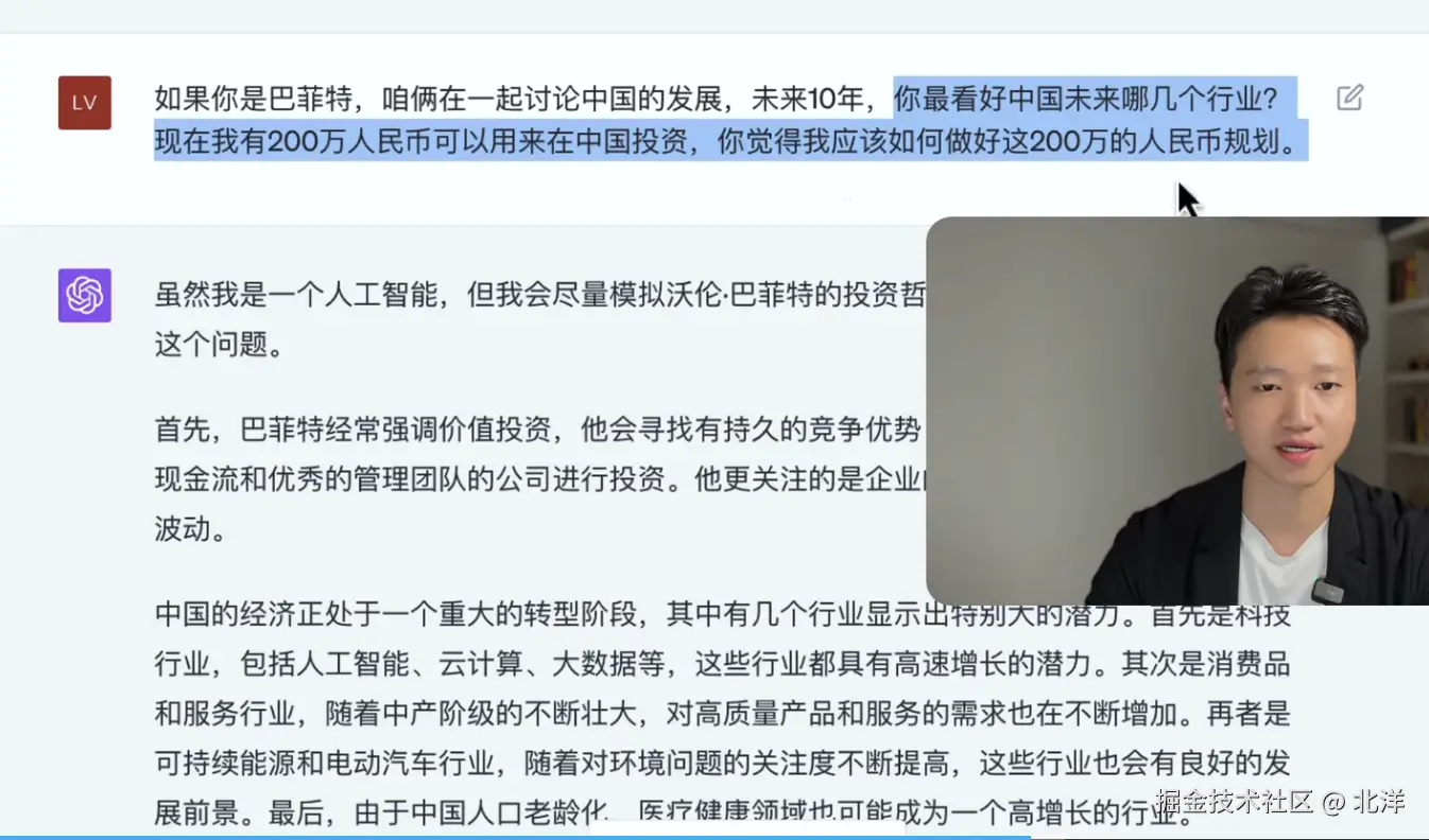 同样:GPT对于未知 会根据已有的信息进行推理出自己不知道的东西,GPT的推理回答会给一些启发和观点。能够给自己提供一些指导意义。