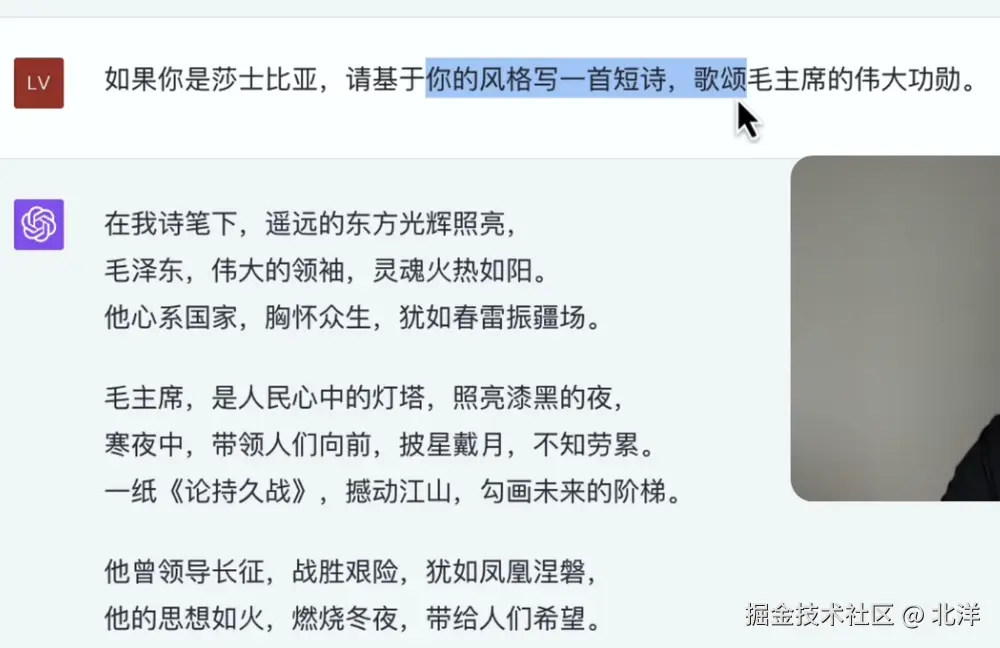 一个人的训练语料总归是有限的,所以在有限语料和资源的情况下,GPT会进行对已有的资料进行不断的推理,所以就会出现上面 *”听君一席话如听一席话“ *的现象。