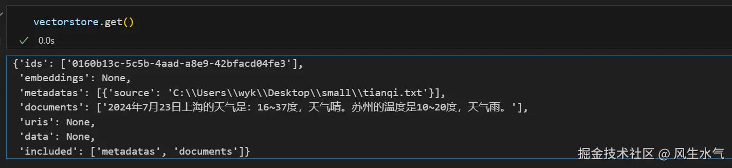 [Document(metadata={'source': 'C:\Users\wyk\Desktop\small\tianqi.txt'}, page_content='2024年7月23日上海的天气是:16~37度,天气晴。苏州的温度是10~20度,天气雨。')]