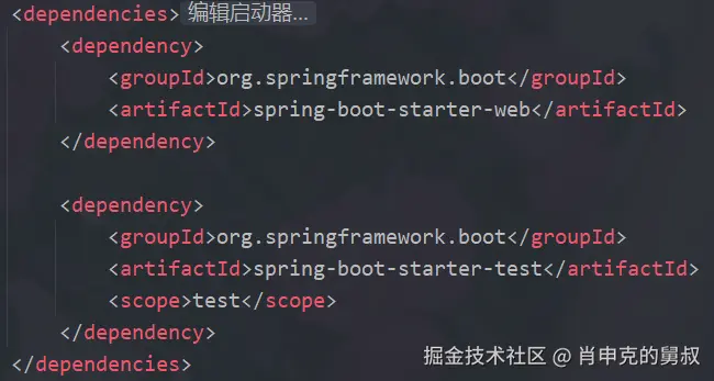 - 提供“starters” :Spring Boot提供了一系列的“starter”项目对象模型(POMs),这些starter包含了运行特定类型Spring应用所需的所有依赖。(如上图 在创建SpringBoot项目时 我们勾选了 web)