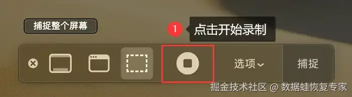 步骤3:选择需要录制的区域,点击 【圆形】 按钮开始录制。