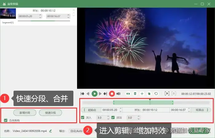 步骤4:录制完成的视频我们可以直接进行预览并保存视频,或者点击并进入 【高级剪辑】 中对视频进行分段、剪辑、增加特效等操作。