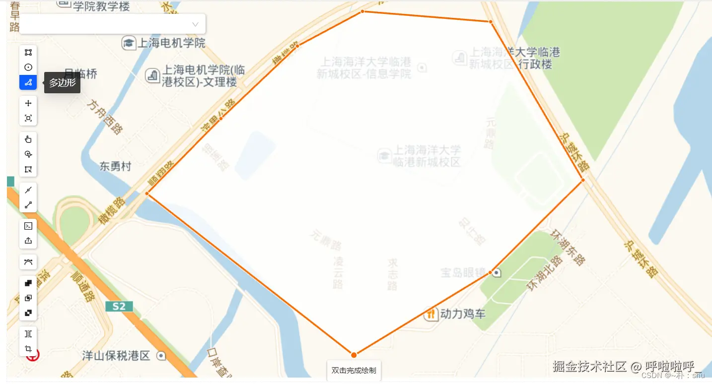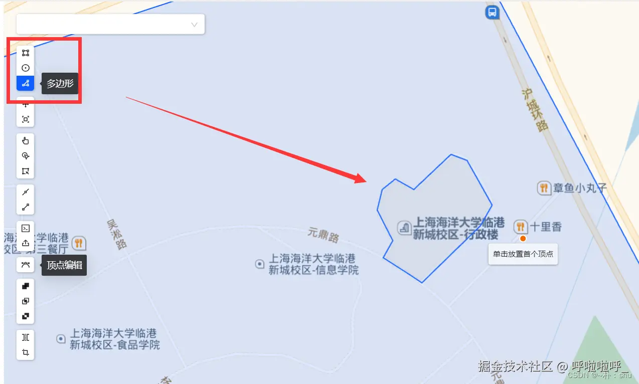 使用左侧多边形工具:(千万不要在绘制过程中移动地图!!不然什么都没有了)