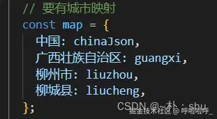 常用的方案有:税务机关代码、adcode、名称简称、data数据映射。下面我以 adcode为例,说一下使用,其他的类似的。