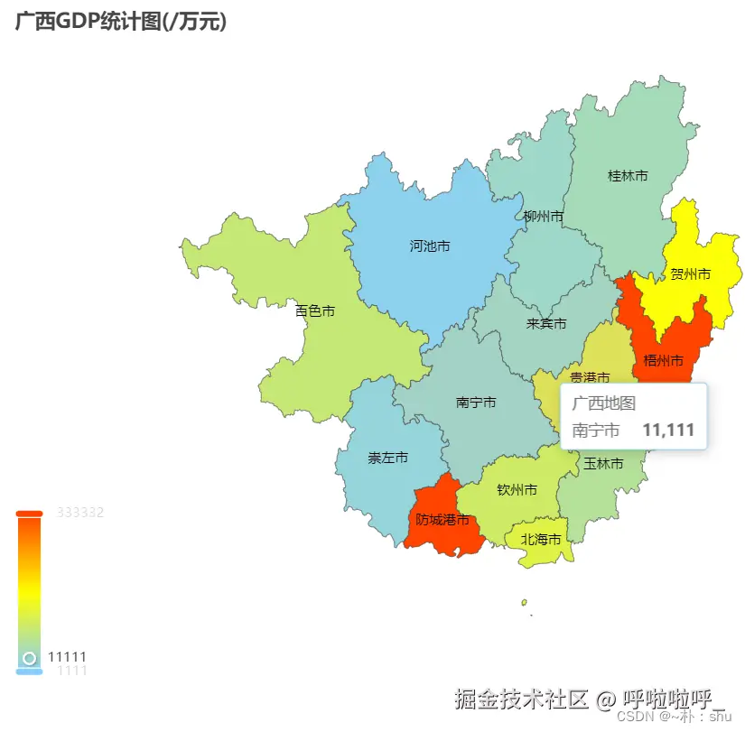 声明:文章来源:Vue 使用 Apache Echarts 绘制地图(省市、地区、自定义)echarts~朴:shu-GitCode 开源社区 (csdn.net)
