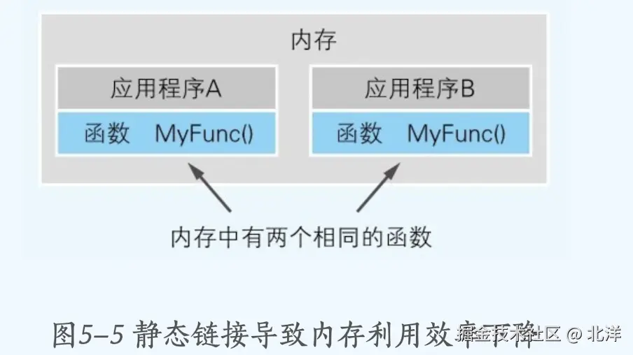 由于会存储目标文件,所以缺点就是 对于公用的符号(也就是变量和函数) 比如打印的函数 来说 每个应用程序都会保存一份这个函数的目标文件 每个程序运行的时候都会加载一份到内存里 浪费空间。