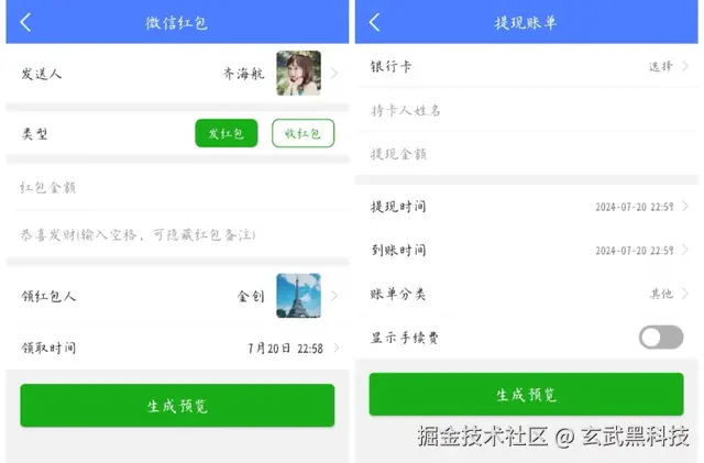 (3)部分功能展示,如设置微信聊天、红包、提现、钱包余额等截图,出来的截图效果跟真实截图一模一样