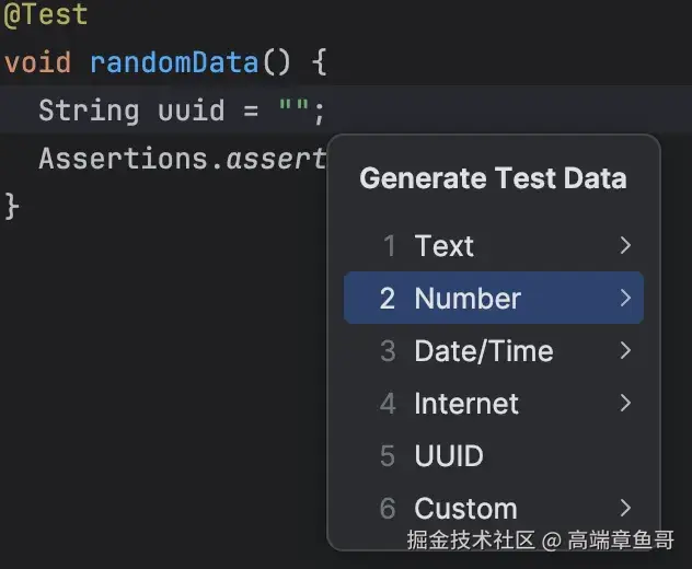 Test Data插件可以提高编写单元测试的效率,因为它可以为我们生成多种类型的测试数据,包括文本、UUID、数字、日期和时间,以及自定义类型,如JSON、CSV和SQL等流行的数据类型。