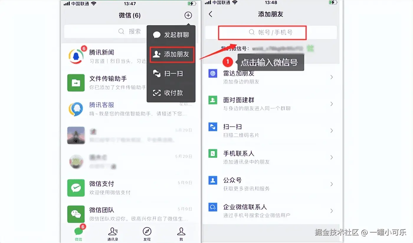 我们一开始添加好友的方式就是通过微信号搜索添加的,或者是通过微信二维码扫描添加。所以,如果不小心删除了好友的话,可以向好友询问微信号或者是二维码重新加回来,解决微信好友删除后怎么恢复的问题。此外,也可以在与好友之间的共同群聊之中,点击好友的头像,即可重新添加回来。具体的操作步骤为:点击微信右上角的添加符号,点击 【添加朋友】 ,在搜索框中输入微信号即可。