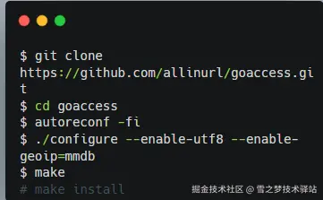 GoAccess支持多种下载安装方式,推荐根据实际情况选择合适的方式自行安装.