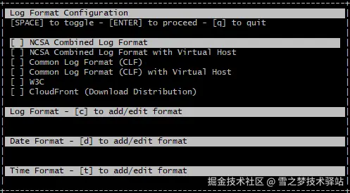 当然,对于常见的web日志格式,GoAccess已经预设好了相应地日志配置,对此我们可以直接开箱即用.