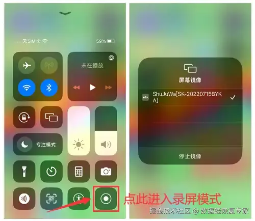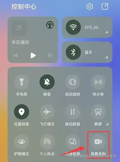 第一步:下拉状态栏,打开控制中心界面,找到并点击 【屏幕录制】 按钮,即可开始录制。