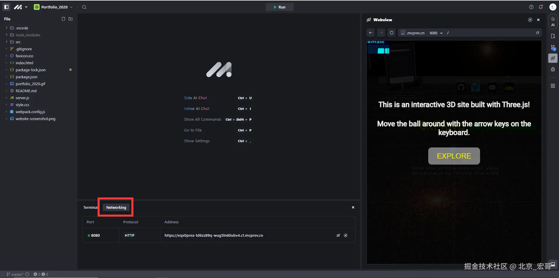 接下来,宏哥本来是打算本文会先介绍如何在本地把项目运行起来,然后讲解其源码和相关技术,最后教你如何修改代码把自己的博文放进去,升级到 3D 博客!但是由于项目需要搭建node.js的开发环境,需要宏哥去下载安装[Node.js](Node.js — 在任何地方运行 JavaScript (nodejs.org)) 而且项目需要对应的Node.js版本特别啰嗦麻烦,而且宏哥只是想体验一下3D博客,又不做深入的研究开发,在本地搭建这么一套环境有点不划算,刚好“豆包Marscode”推出正文活动:juejin.cn/post/738499…宏哥想到这不是一举两得的好事吗,想也不用想了直接拍脑袋那就在“豆包Marscode”上来实践一下吧。