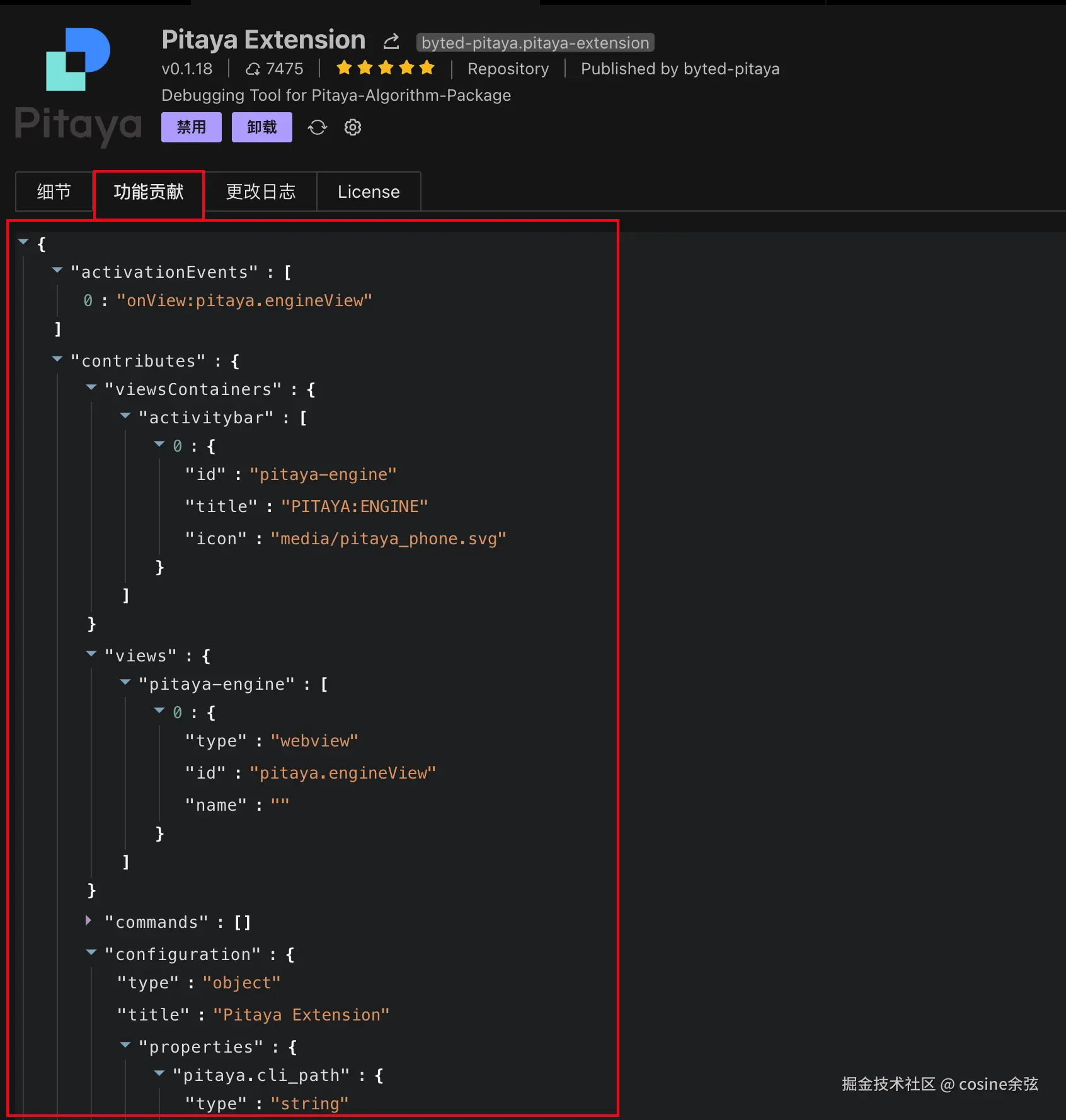 contributes(即拓展了什么功能) (划重点)- 如下图,是 pitaya 插件在商店中展示的截图,