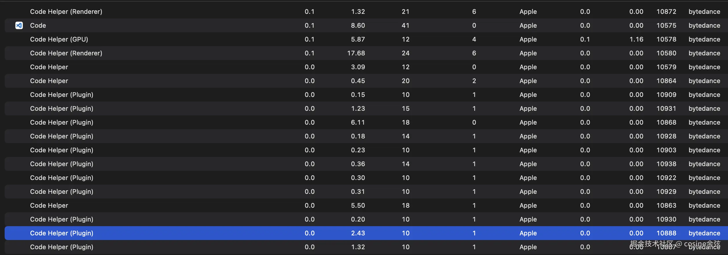 VScode 运行时,活动监控截图: