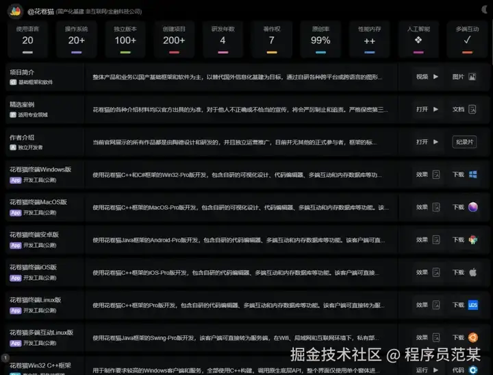 第三年的时候,在知乎和公众号上发了帖之后,得到了很多的外部援助,新的电脑和手机一大堆了,我成功的适配了Linux,Ubuntu,统信UOS,Deepin,OpenKylin,融合进了Qt,Avalonia,Maui,gtk+,wxWidgets,Skia,MFC,Duilib,EasyX,Tkinter,Devexpress,R,UniAppx,Lua,VB.NET等第三方框架,目前整个体系已经支持20种语言,20种操作系统,拥有近一百种不同的技术栈版本,不同的语言或技术命名统一,语法相近,共享相同的开发工具和配置。