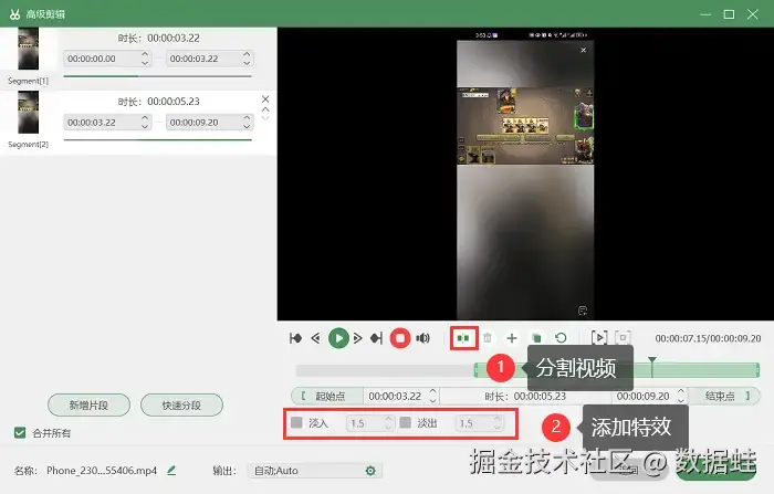 步骤3:录制完成后,软件会提示录制已完成,并自动保存录制的视频到指定位置,你可以在高级剪辑页面对游戏视频进行更多处理,包括添加特效、分段视频等。