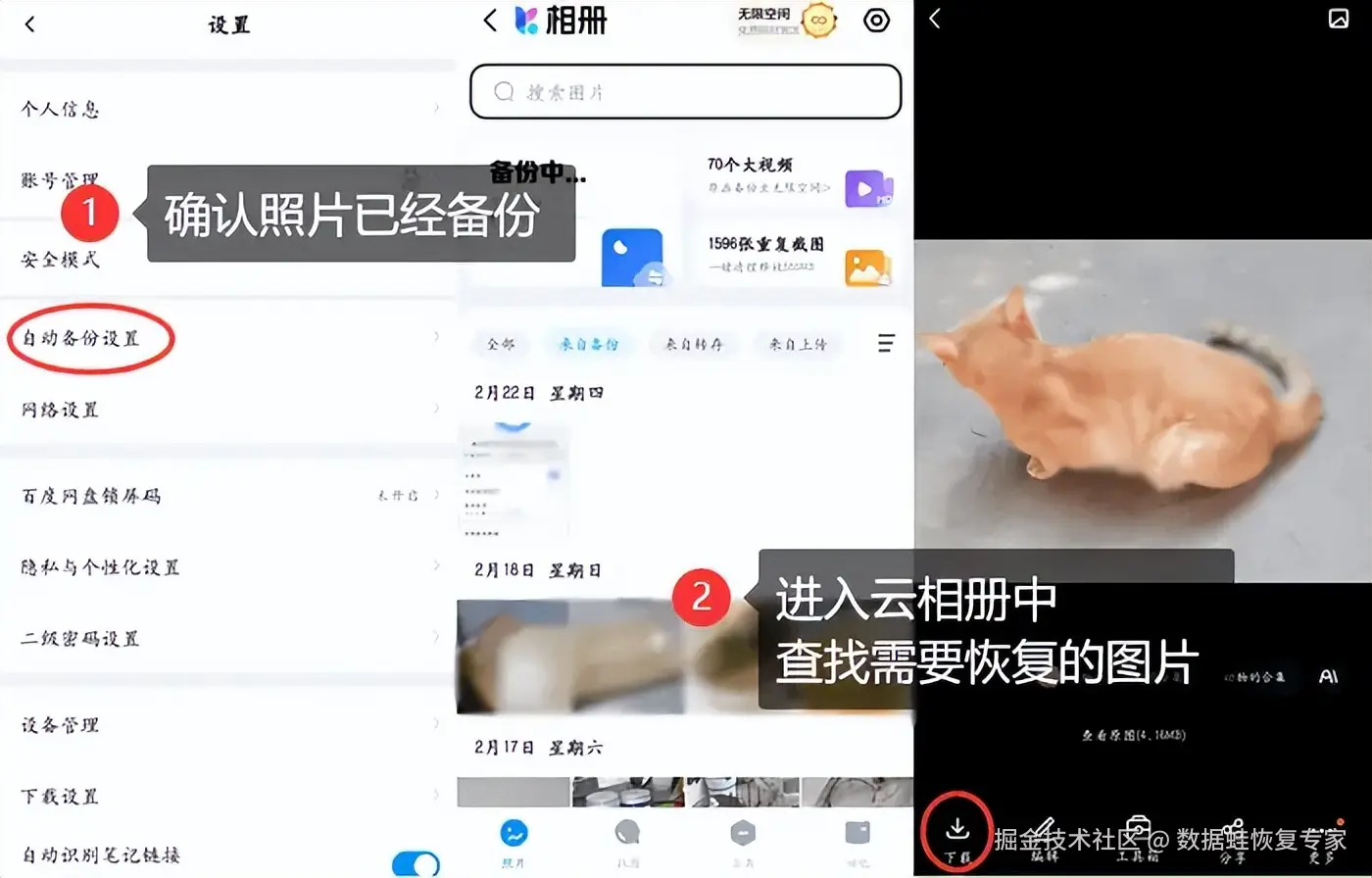 步骤2:进入软件的云相册中,查找需要恢复的图片,点击下载即可。