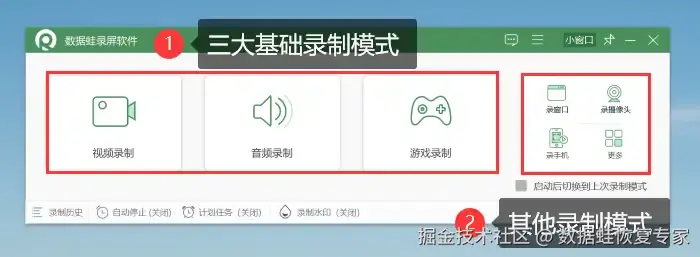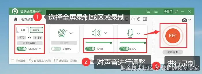 下面是使用数据 蛙录屏软件进行屏幕录制的操作步骤: