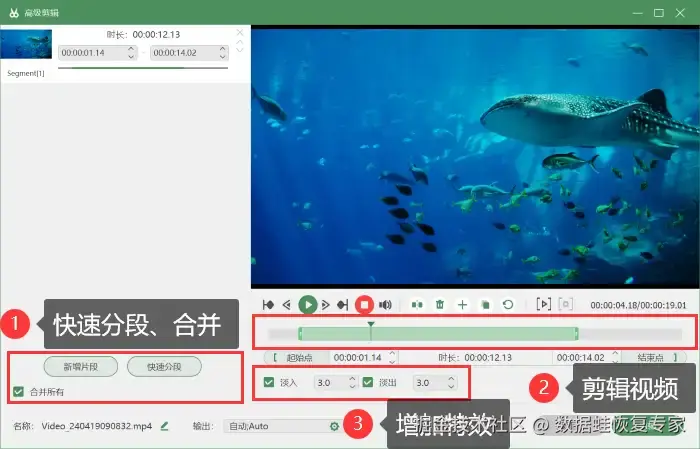 - 强大的编辑功能: 能够对录制完成的视频进行剪辑、压缩、合并等操作。