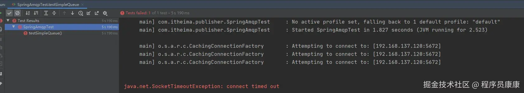 - 本地重试3次以后,抛出了 AmqpRejectAndDontRequeueException 异常。查看 RabbitMQ 控制台,发现消息被删除了,说明最后 SpringAMQP 返回的是 reject