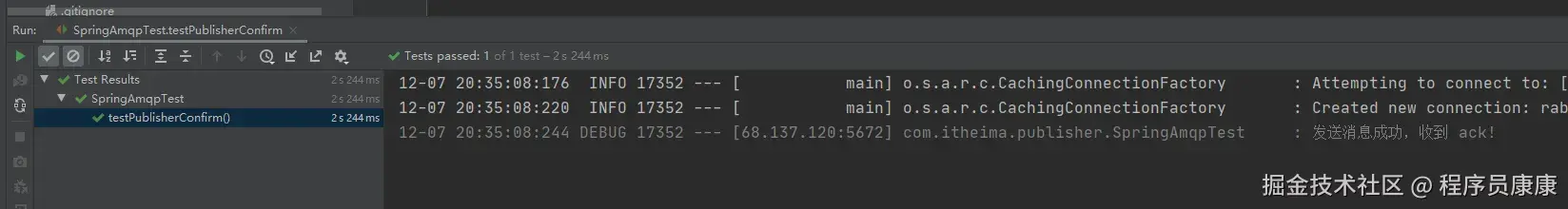 新建一个测试,向系统自带的交换机发送消息,并且添加ConfirmCallback: