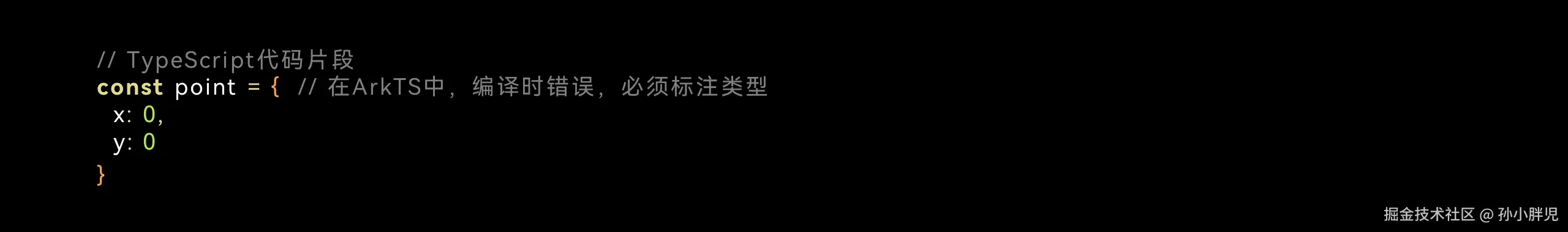 以上TS代码片段展示了没有类型的场景。如果编译器不知道变量point的确切类型,由于对象布局不能确定,编译器无法深度地优化这段代码,造成性能瓶颈。没有类型也会造成属性的类型缺少限制,例如point.x的类型在此时为number,它也可以被赋值成其他类型,造成额外的运行时检查和开销。