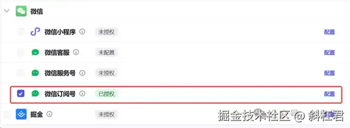 这时可以看到,微信订阅号这里显示 「已授权」,证明配置成功了。