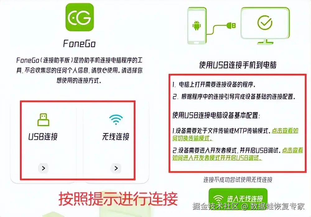 第一步:软件提供了超级全面的操作指引,安装完成后,打开软件,按照提示将手机连接至电脑。