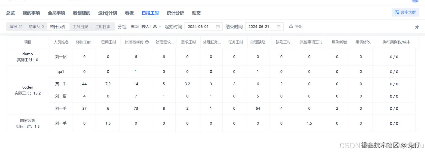 (7)人员产出:工时、事项