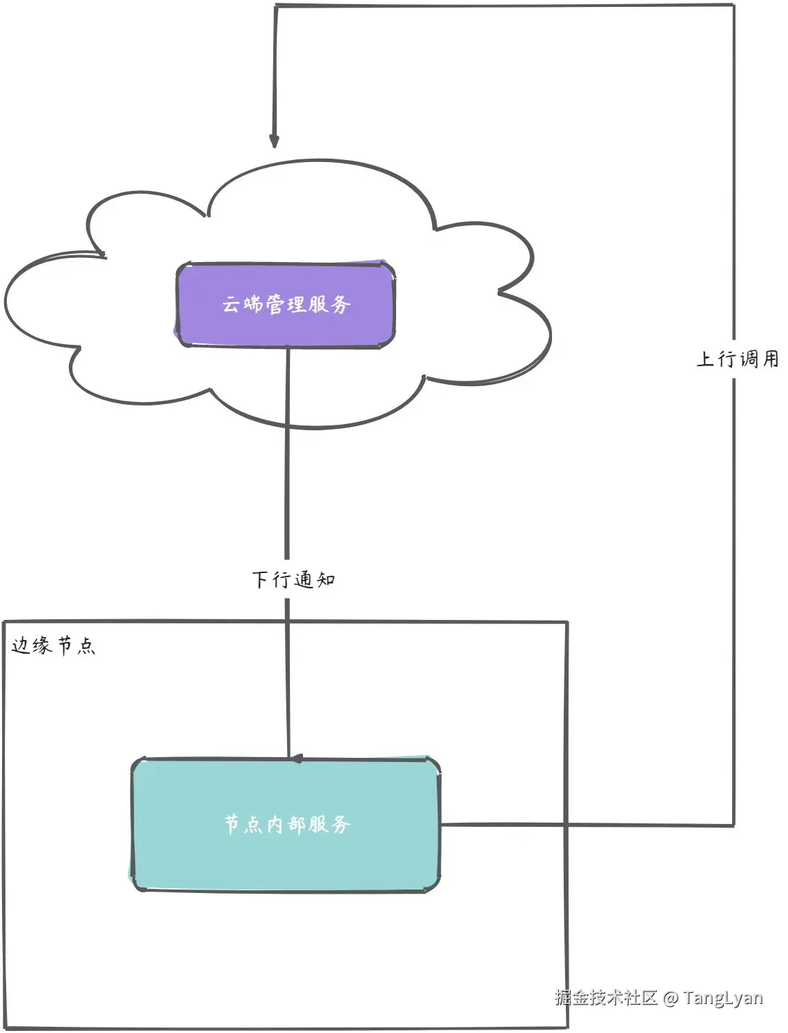 - 云上服务直接调用边缘节点服务,边缘节点通过公网反向回调云上服务。