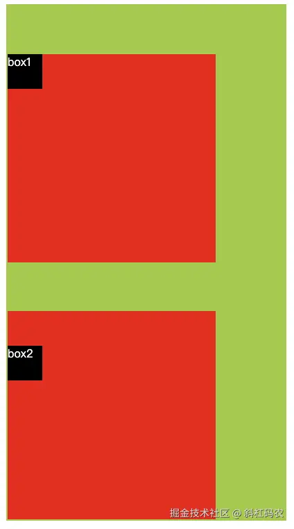 1、box1设置了margin-bottom: 50px; box2设置了margin-top: 40px; 二者实际的margin只有50px,说明二者margin合并了且显示比较大的值