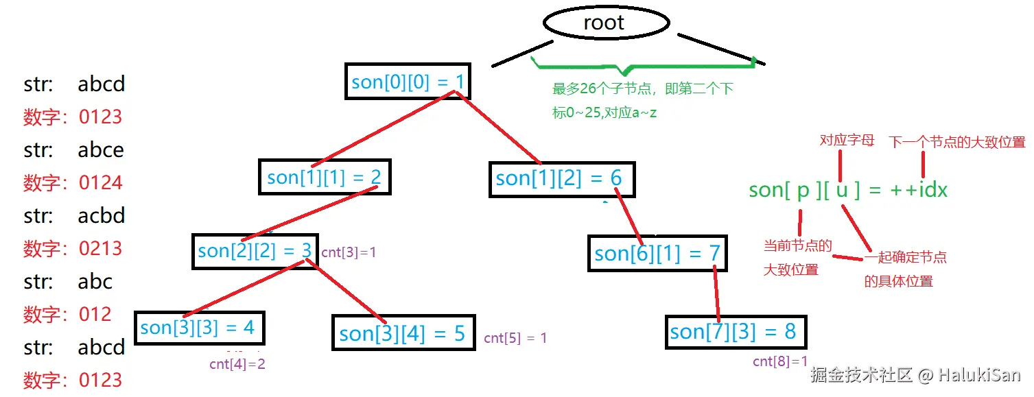 如果要将p[9]=9插入到p[3]当中,应该找到3的祖宗节点,