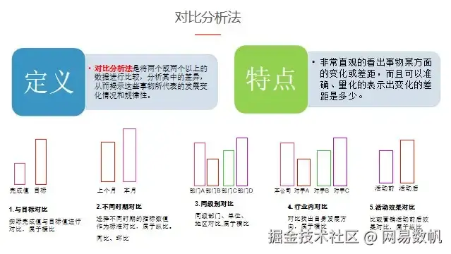 ② 用对比分析的方法评估指标的表现,反映业务的变化