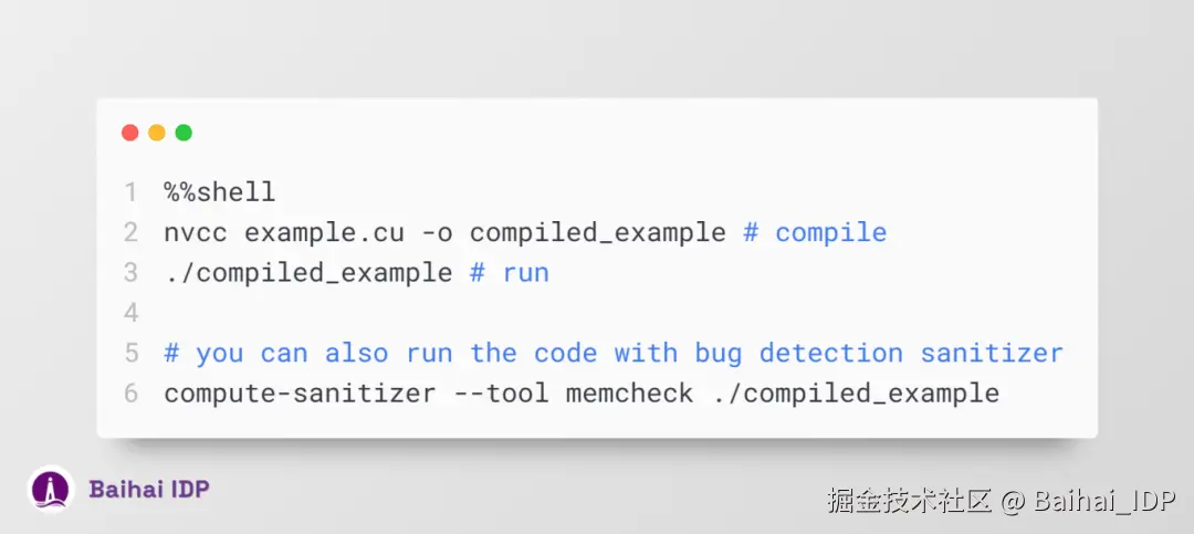 此外,CUDA 的错误检测机制同样不可或缺,这种检测机制能协助我们及时发现并修正 GPU 上潜在的程序缺陷(bugs)。倘若忽略此环节,device 线程(CPU)将持续运行,而 CUDA 相关的故障排查则将变得异常棘手,很难识别与 CUDA 相关的错误。