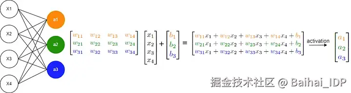 接下来,让我们聚焦于一个基础的神经网络模型,其核心运算通常表现为 y = σ(Wx + b),如下图所示: