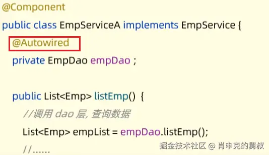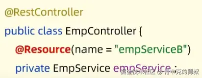 我们就可以去掉EmpServiceA头上的 @Component, 使 @Component在EmpServiceB的头上,即可以实现切换。