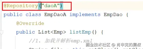 再在dao层中创建一个实现类EmpDaoA(连包带类)