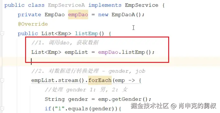 再接下来就是调用empDao当中的方法listEmp( ),来获取处理之后的数据: