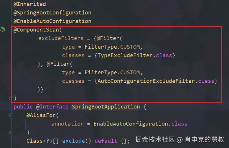 ·@ComponentScan注解虽然没有显式配置,但是实际上已经包含在了启动类声明注解 @SpringBootApplication