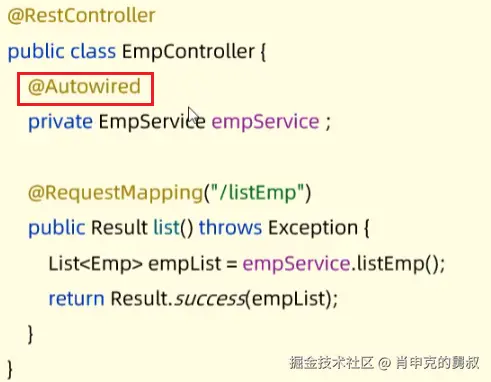 就在声明成员变量上方加上注解 @Autowired即可(自动装配~cool)