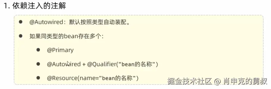 - @Resource 就直接不用 @Autowired了,因为它是直接按照名称进行注入。