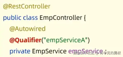 前面我们说了IOC容器中同类型的只能放一个实现类进去(用到四个注解),但如果我在Service层里的实现类EmpServiceA和实现类EmpServiceB,头上都写上 @Service呢?