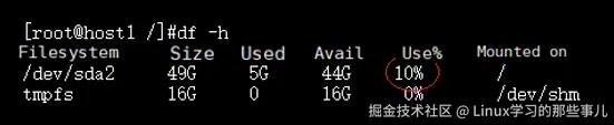 然后,执行以下命令查看文件系统的使用率。