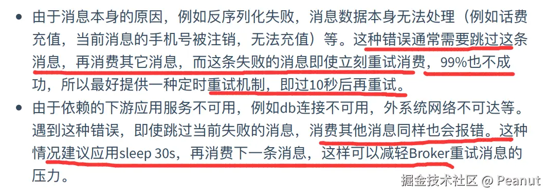 消费失败的消息肯定不会立即重试,因为立即重试大概率不会成功。