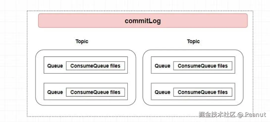 - 总结,CommitLog存储实际消息且追加写。ConsumerQueue类似于一个索引文件, 一个队列对应consumeQueue,每个consumeQueue有多个ConsumeOffset。
